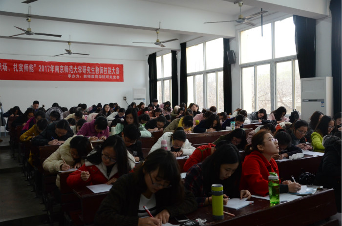 教师技能大赛是面向全体南京师范大学研究生的校级比赛,分为“三字”、微课、教学设计等三个主题。本次“三字”比赛共有钢笔字、毛笔字、粉笔字三种形式。活动当天因参赛人数较多,参赛选手须于比赛开始前半小时签到入场,按选手序号入座。