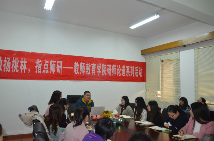 16级学科教学(生物)专业于逸夫楼212举行了主题为“坚持理论与实践的高度融合,追寻幸福的教师生涯”的学术沙龙活动。沙龙活动过程中,解凯彬教授与同学们分享了他二十多年的教师生涯的一些经历与感悟,与同学们一起探讨幸福教师的含义,让同学们受益匪浅。