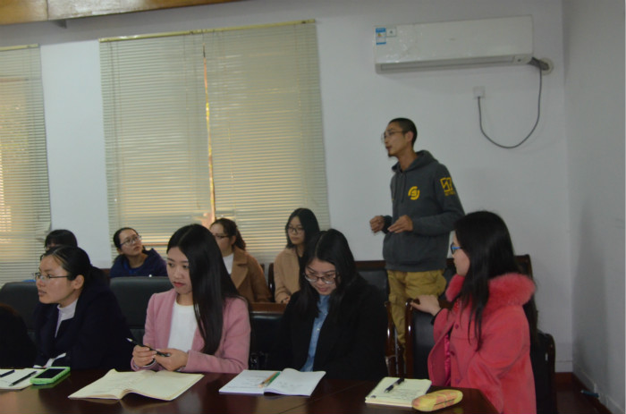 随后,解老师鼓励同学们无论是在什么时候都要做一个善学者、善思者、善交流者,希望同学们以后都能成为一个有情怀、幸福的教师。解老师问同学们对幸福的教师的定义是什么?大家就“幸福”这个话题热烈地讨论了起来。任美丽同学说,能得到学生的认可的老师就是幸福的教师;牛叠亚同学认为学生的成才就是教师最大的幸福;张静同学说在未来的教师生涯中,做值得去做的事情,幸福就是这么简单。解老师指出同学们要克服功利主义色彩,不功利可以带来受益终生的东西。接着,他继续向同学们分享他教师生涯中的一些趣事,并把“知足,知不足”这句话送给了大家。