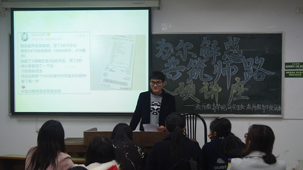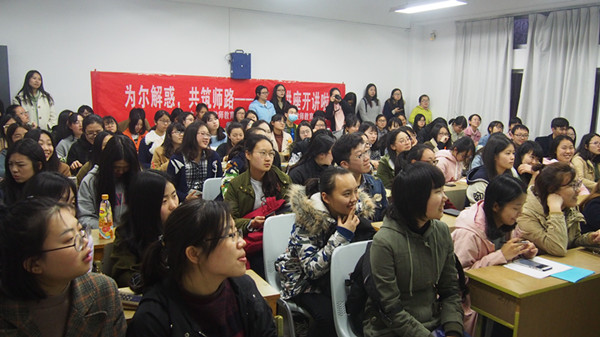 研究生学生会主办、教师院团委协办的“为尔解惑 共筑师路”本硕交流会于南师大仙林校区学明楼209教室顺利开讲。本场专题交流会由院研会副主席刘瑛琦主持,邀请了学科语文方向的李允霖以及学科数学方向的程庆保分别带来有关《王侯将相爱写词乎?——李煜、欧阳修、苏轼词选讲》和《生活中有趣的数学与逻辑》的精彩讲演。博彩网址大全
