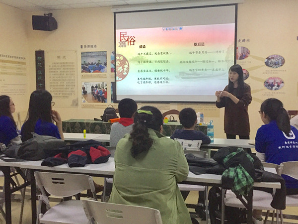 此次活动由研会办公室卢思颖主持,共由五个环节组成。活动伊始主持人询问是否有人知道端午节的起源,学生们积极热烈举手,争先恐后地回答。主持人对学生们的回答进行了评价后,着重讲述了流传最广的屈原的故事,并邀请学生表达感受。而后补充讲到了曹娥传和迎涛神等由来。紧接着主持人邀请学生说说端午节有哪些民俗,自己在端午节那天会做什么?学生们热情高涨,你一言我一语,有的说吃粽子,有的说赛龙舟。主持人总结了学生说的传统习俗,并详细介绍古人在端午节时的活动,比如挂艾叶菖蒲、佩香囊、饮雄黄酒、游百病等。为了加强学生对端午这个传统节日的印象,主持人带领他们颂读一些相关的,生动活泼、趣味盎然的歇后语和谚语。当然,除了中国有丰富多彩的民俗活动,其他亚洲国家也过端午节,主持人补充介绍了日本和韩国的端午节活动,学生们也都听得津津有味。