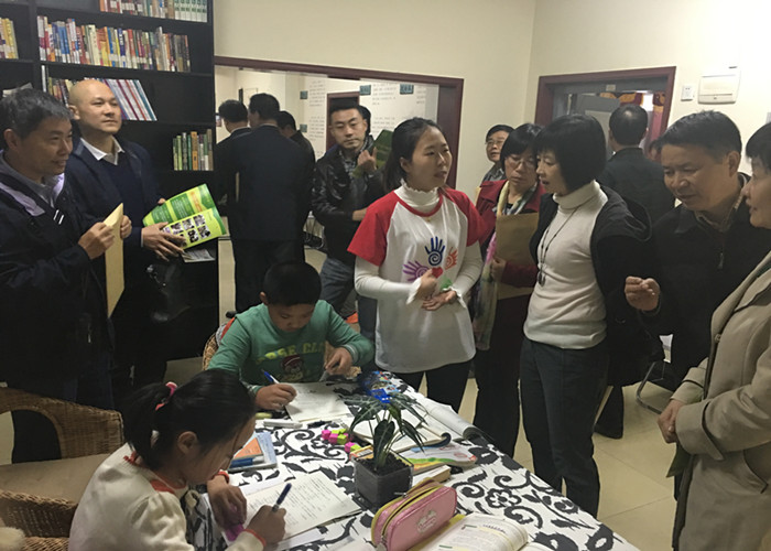 的研究生们自愿参加的志愿活动,结合七家湾社区的民族特色,充分发挥我们的学科优势,将课堂分为日常活动和特色活动两个部分。平时在小学生放学后和家长下班前的断点时间,志愿者们会为小学生进行课业辅导及心理咨询等;特色活动就是每月一次的结合民族文化,传统文化的主题课堂,意在丰富小学生的课余生活,加深对民族文化的了解和热爱。听了这番解释,前来参观的领导们纷纷感叹并称赞这个独特的学习角。他们说,四点钟课堂是一项切实为社区居民服务的活动,与民族特色也有很好的契合。其他各市的民族工作者也表示,参观回去后可以鼓励各社区将类似活动开展起来。