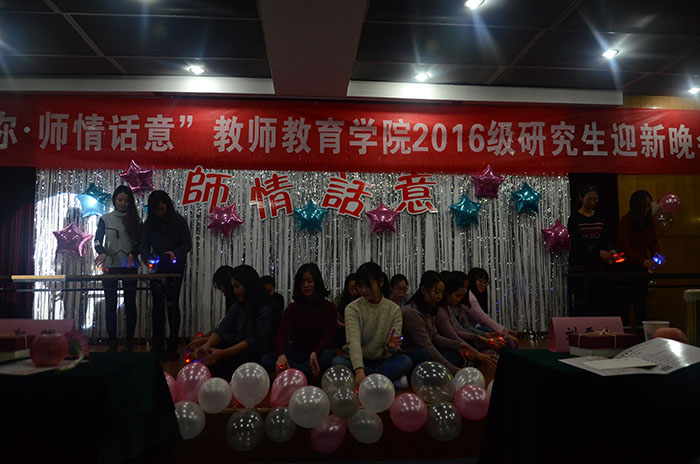 迎新晚会历经一个月精心策划筹备,得到了学院领导老师的高度重视和大力支持,每个节目都通过层层选拔,优中选优,老师们也加入到节目中来,营造了师生同台其乐融融的氛围。为了节目更加精彩,能够体现教师院的学院特色和学科素养,研会各部门、各个专业班级积极排练、不断完善,在中午与晚上课余时间争分夺秒,一次次修正走位,一遍遍琢磨细节,大家都倾注了全部的热情去对待这次活动,一次晚会的背后付出了无数师生共同的努力和汗水。