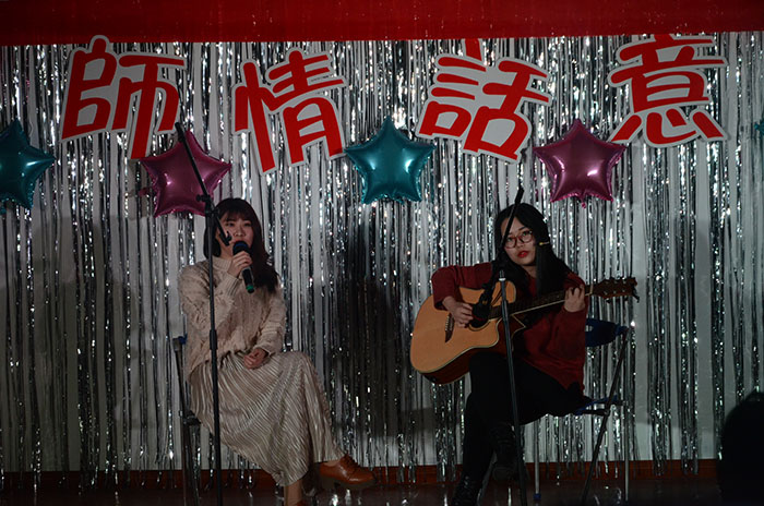 最后压轴篇章“木兰花开”中,刘更生老师演唱了淮剧片段,并与两位同学共唱《夫妻双双把家还》,一同感受师生同乐的现场氛围。三年制班的歌舞《Cups》,带来了玻璃杯和灯光搭配的创意,动感十足。话剧《白雪公主》,融合了化学班的学科特点,在跌宕起伏的情节中穿插各种化学小实验,夺人眼球。小品《孔雀东南飞》,被学科教学英语班演绎的曲折生动,同时又笑点不断。杨作东院长特地为大家带来一首《天路》,浑厚的声音饱含感情,举手投足间体现出教师的风范。最后,学科教学地理的同学们合唱《汉口西路的日子》,用改编的歌词传达出对研究生学习生活的热爱珍视。