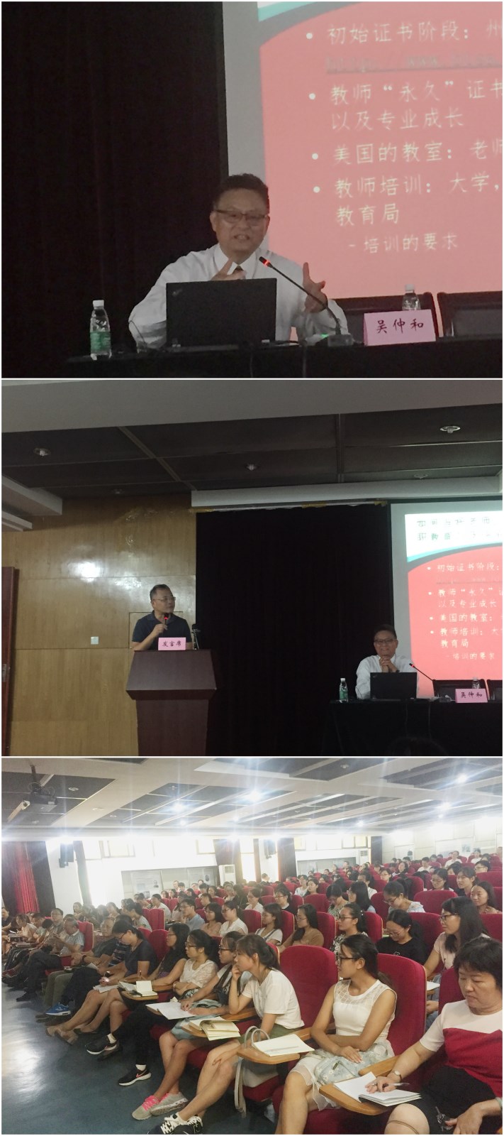 进行学术交流。在教师院马复老师的主持下,吴仲和教授在随园校区逸夫楼报告厅就美国教育概况和教师教育为大家带来了一场精彩的学术讲座。教师院杨作东院长、副院长汪涛老师等多位优秀教师和全体教师院2016级研究生一同聆听了讲座。