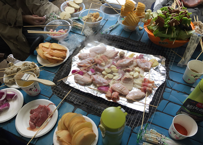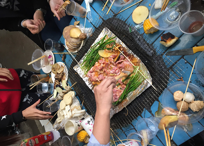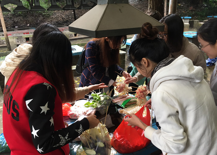 据悉,为使素质拓展活动更丰富有趣,教师院研究生会原本安排了“爱的抱抱”、“你画我猜”、“搭桥过河”、“十人九脚”等环节,但由于天气原因,这些都无法正常进行。不过,生活部还筹划了备用方案,为大家带来了一顿烧烤盛宴。在烧烤过程中,大家都亲手操作起来,有的准备餐具、有的挑选食材、有的负责烤制……面对美食,大家放松心情,释放自我,逐渐缓解了学校上和专业上的距离感。