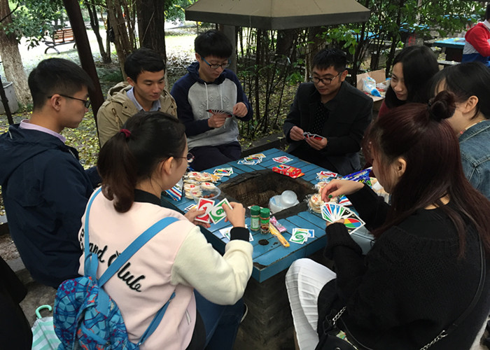 上午9时左右,活动正式开始。为了加强成员之间亲近感,大家先进行了一轮桌面游戏主要有“谁是卧底”、“狼人杀”等。“谁是卧底”是一款比拼语言表达能力和分析能力的游戏,在游戏过程中大家分别描述自己拿到的词语,直到找出拿到不同词语的“卧底”。“狼人杀”则主要考验成员对合作方法的关注度,游戏主要由狼人、特殊村民和普通村民组成,狼人和村民互为目标,需要个人有机智敏锐的洞擦力且同一角色的成员有通力合作的有效策略。游戏过程中,两个学校的研究生会成员、同一研究生会不同部门的成员之间既有合作,又有辩论,在思想的碰撞中渐渐熟悉起来。