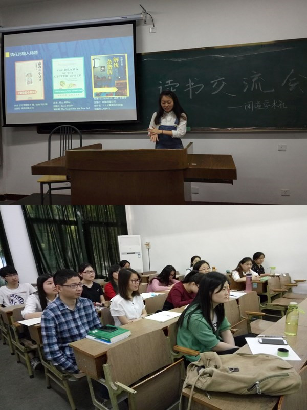 本次活动为本学期第一次读书交流活动,大家以书会友,以交流读书心得为目的,不仅自荐上台推荐自己近期所读的好书、奇书,更就自己所感兴趣的书籍展开了热烈且充满思想碰撞的交流讨论。在荐书环节,大家所推荐的书籍丰富多彩,涉猎广泛。社长魏思佳同学首先介绍了《窗边的小豆豆》和《the drama of the gifted child》两本书,书中所表达的儿童教育“因材施教”“解放天性”等观点,引发了大家对当代教育理念的再思考,以及分析儿童心理的兴趣;魏同学的介绍起到了抛砖引玉的效果,社员们纷纷踊跃发言,推荐自己喜爱的小说及专业书籍,如东野圭吾的《解忧杂货铺》,傅佩荣教授所著的《国学的天空》,其中余秋雨的经典著作《山河之书》也引起了同学们的浓厚兴趣。交流会上,社员们侃侃而谈,相互交流着自己的读书经历,揣摩与品位着作者的写作意图和文字背后蕴藏的深切含义,许多有趣的见解得到了抒发,气氛非常热烈。