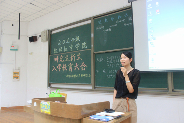 当天晚上七点整,教师院2014级研究生开学典礼于学明楼202教室举行,研究生辅导员王鑫主持了此次会议。同学们热情高涨,教室内座无虚席。王老师向在座同学介绍了教师院研究生的基本构成、培养方案以及规章制度。紧接着又对奖学金评定等具体事项进行说明并指导同学们进行学籍登记表及学生证的填写。王老师希望在座每一位新生以最好的状态迎接研究生生活,多参与实践,多投身科研,度过充实的研究生生活。接下来是班级干部自我介绍环节,经推优选拔出的班干部纷纷表现出服务同学的热情和决心,赢得了在座同学的热烈掌声。最后一个环节是教师院研究生会招新动员,研会主席李华玲向大家介绍了教师院研会的基本情况及各部门职能,通过生动的视频带领大家回顾了博彩网址大全