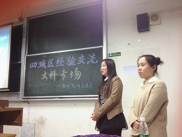 研究生在学正楼208举办四城区经验交流会文科专场,2012级的高珊学姐和崔晓星与同学们分享了招聘考试成功的经验,两位学姐分别来自学科教学(英语)专业和学科教学(语文)专业。博彩网址大全