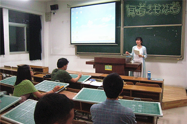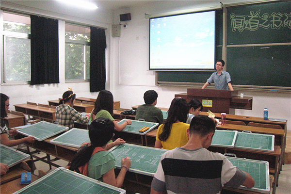 为增强师范生的艺术涵养、提高书法水平,教师院闻道学术社于6月6日晚六点半在北区教学楼203教室举行“书法道”艺术讲座,面向教师院全体研究生传授书法知识及技能。此次邀请到的主讲人为教师院学科语文专业的夏帅波、张一帜以及学科地理专业的姜文正,三位主讲人的主题分别为“中国书法文字发展史”、“书法实践与三笔字”、“POP书法与海报创作”。教师院13级各学科研究生前来聆听了此次讲座。