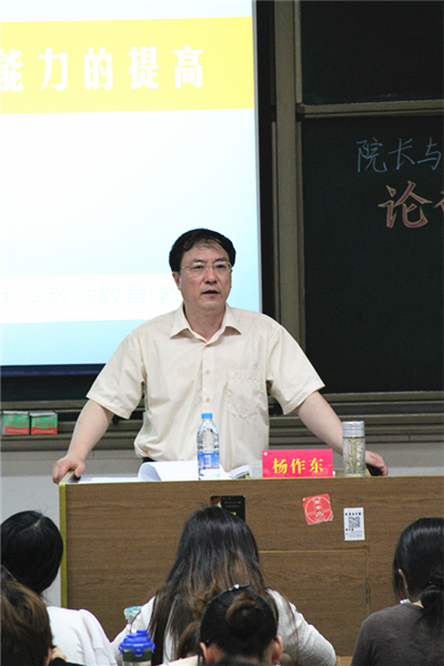 之后,杨作东教授针对同学们提出的问题,阐述了自己的工作设想和计划,同时希望同学们为教师院研究生培养建言献策。