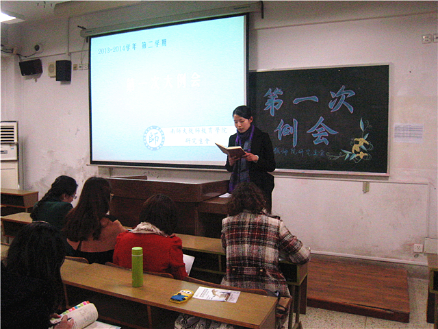 学期伊始,王老师首先对研究生会全体成员送上了新学期的美好祝福。经过院党委和领导老师的研究商讨,选举出了2013级研究生会各部门的部长负责人,他们是研究生学生会主席李华玲,副主席王星、陈忆宁、贾礼娜,办公室主任严京,副主任卞昕文,学术部部长凌迪如,实践部部长蔡春蕾,文体部部长李亮亮,生活部部长陈杰和宣传部部长黄沁昕。在任职结果公布后,各部长负责人分别就本部门的工作做了简单的任职汇报。