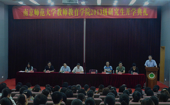 党政领导班子全体成员出席了典礼,学院教师代表、学科教学负责人、研究生秘书、辅导员以及2013级186名研究生共同参加了典礼。此次典礼还特别邀请了江苏省中学物理特级教师,江苏省首批教授级中学高级教师,江苏省“333工程”培养对象,南京市物理学科带头人,金陵中学朱建廉老师作为嘉宾出席。会议由教师院党委书记张杰主持。
