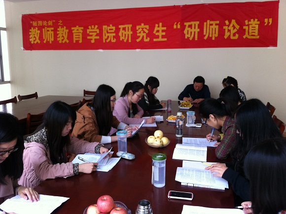 韩雪同学首先发言,她就“教师教育发展历程及职后教师形式反思”这一话题抒发己见,引发大家思考和讨论。孙丹同学则接着从“教师职后教育的反思”方面畅谈自己的想法,并通过深刻的案例让大家更加清晰地感知问题。谭永丽与蒋文意同学则分别从“教师的职后培训的主体参与问题探讨”、“民转公教师及代课教师的继续教育问题”两方面表达了自己的意见。现场讨论氛围热烈,大家纷纷通过问题的讨论进行学术思想的交锋。