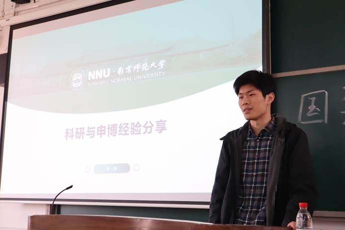 首先上台分享的是凌一洲学长。学长以第一作者身份发表SSCI、SCI论文8篇,担任多家SSCI、SCI、北大核心期刊审稿人,在学术科研上表现出色,拥有丰富的科研经验。凌一洲学长主要从科研与申博两方面与同学们分享经验。高中阶段,他的学术萌芽发端于对异常实验现象的追问,对已有答案的质疑和实验认证以及对不完美实验装置的改进。在本科阶段,凌一洲学长从技术支持的科学美育和技术支持的科学教育两个方向着手研究。在硕士期间,凌一洲学长作为特聘教师在中小学分别开设每周一次的校本课程,通过多来源的数据收集回答研究问题,并且将研究成果反哺于时间,为教学实践提供具体可操作的解决方案。凌一周学长在科研方面对同学们提出四点建议:在交叉领域寻找有价值的新问题;发挥自身优势获得或运用新资料;跨学科引进或借鉴合适的新方法;开展研究前找准合适的目标定位。最后,凌一洲学长为同学们介绍了国奖申请的大体情况以及博士申请相关经验。