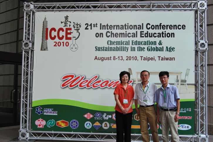 硕士研究生陈欢欢同学等三人参加了由国际纯粹应用与化学协会(International Union of Pure and Applied Chemistry,简称IUPAC)在台湾省台北市举行的第21届国际化学教育大会(The 21st international conference of chemistry education ,简称21 ICCE),会议由台湾师范大学承办。