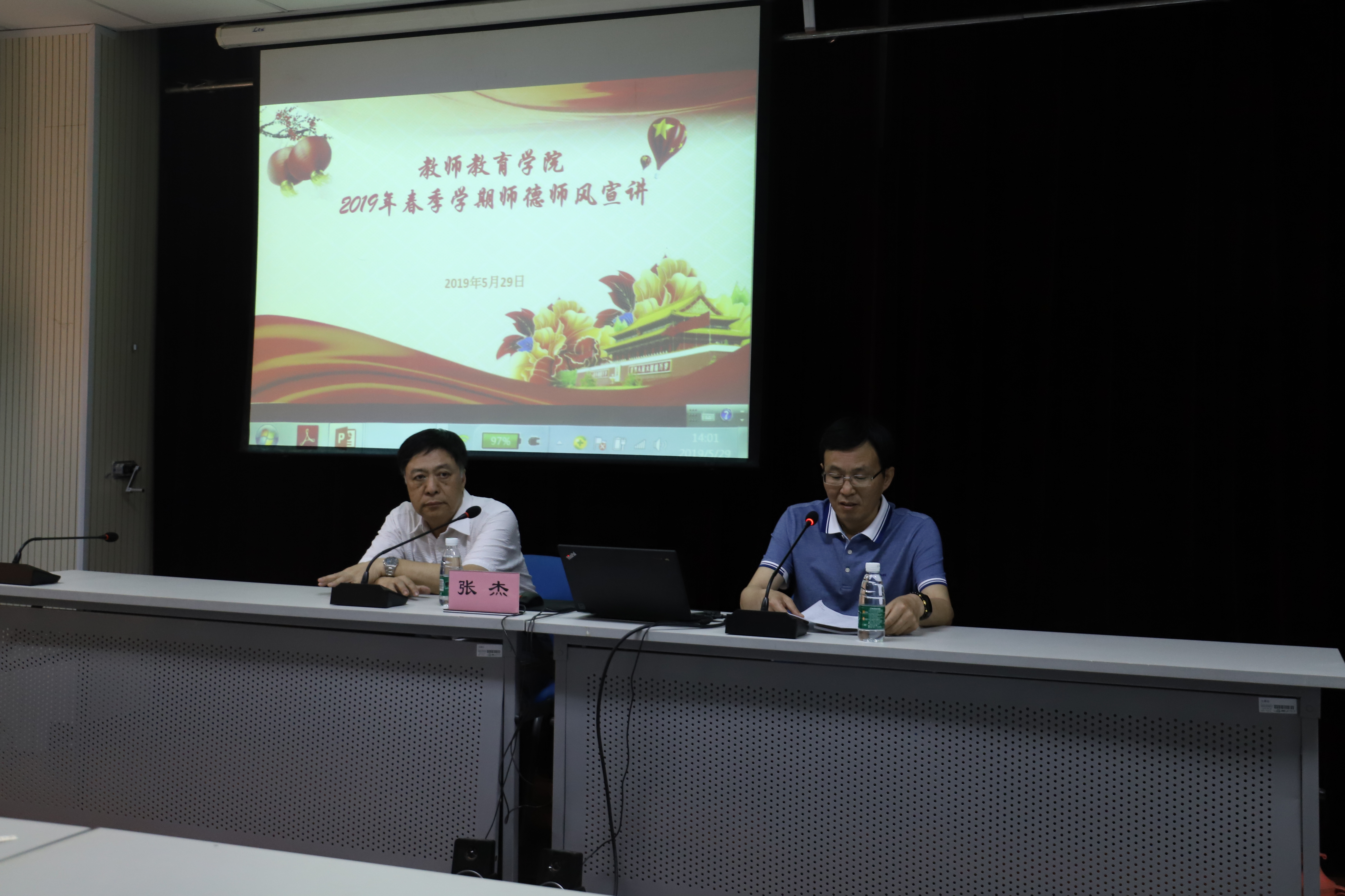 2019年春季学期师德师风宣讲在逸夫楼210会议室举行。本次宣讲邀请到南京师范大学外国语学院博士生导师,奕熙精英教师奖(第一届)张杰教授做主题为“理想为先,育人为本,方法为径”的讲座。参加讲座的有学院全体老师和部分研究生代表。博彩网址大全