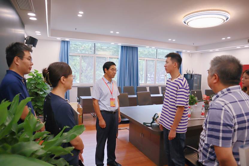 中午时分,研究生院院长莫少群一行来到教师院,看望今年迎来的一位特殊新生。王梦晨大学时突发疾病导致视力出现障碍,但他顽强不屈,用超于常人十倍的努力最终考取南京师范大学,顺利成为学科教学(英语)专业2023级的一名研究生新生。老师们对其表达了关心慰问,仔细询问了他在课程学习及日常生活方面的需求,表示学校和学院将会全力提供支持和帮助。