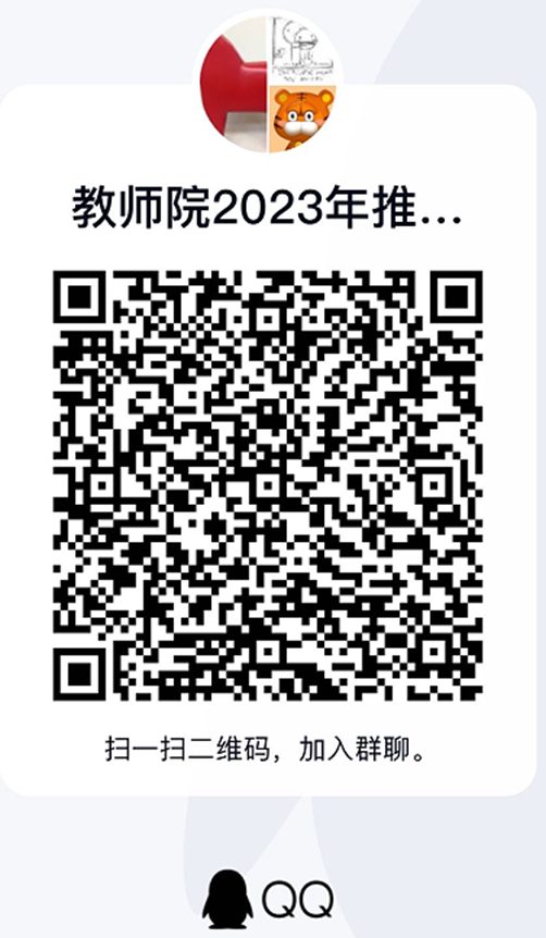 将根据生源情况组织两个批次的复试,首批9月21日(预报名在21日前的考生),第二批9月26日(预报名在21日及之后的考生),具体复试安排将在QQ群另行通知。请符合以下条件的考生加入2023教师院推免复试QQ群,群号753389445,申请理由:报考专业+姓名。