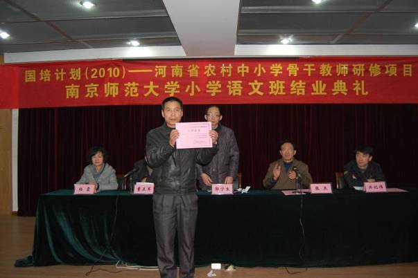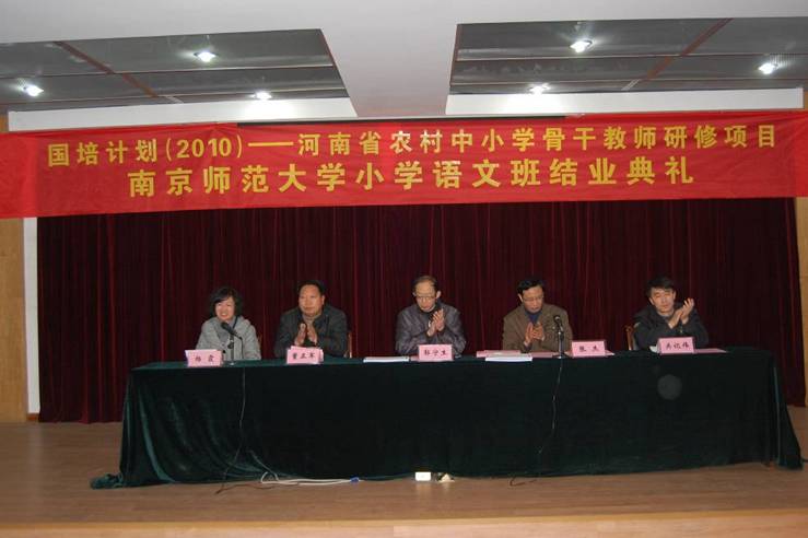 教育部、财政部“国培计划(2010)—河南省农村中小学骨干教师培训项目”南京师范大学小学语文班结业典礼在这里隆重举行。来自河南22个地市的100名农村小学语文骨干教师结束了为期15天的学习并顺利获得了由教育部监制,南京师范大学颁发的结业证书。