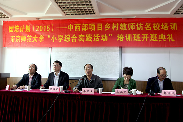 10月11日,国培计划(2015)——中西部项目乡村教师访名校培训南京师范大学“小学综合实践活动”培训班开班典礼在随园校区举行。省教育厅师资处处长崔春霞、我校副校长傅康生出席开班典礼。