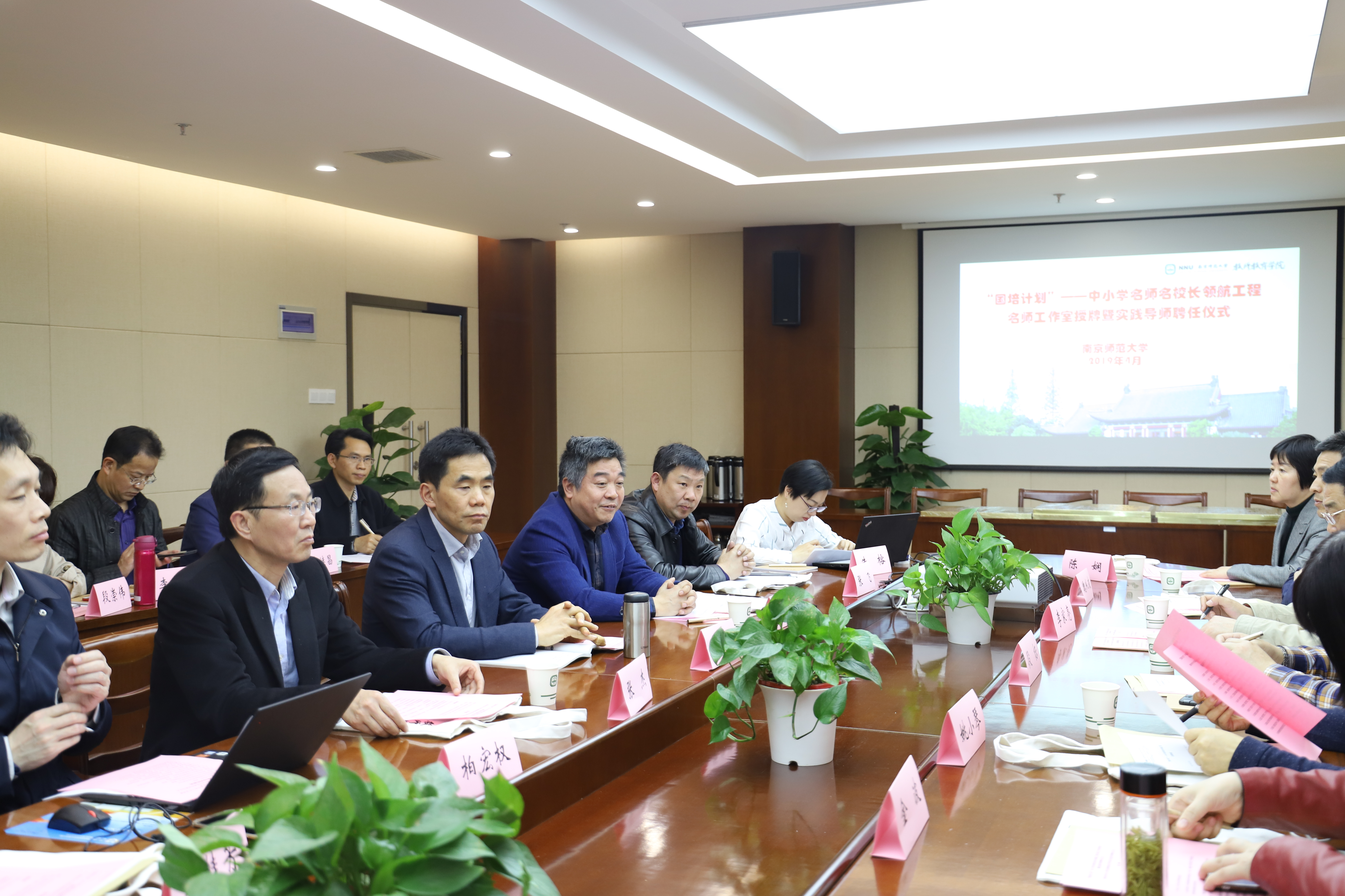 党委书记张杰主持。会议简要介绍了名师工作室授牌的背景和跟岗要求,举行了名师工作室授牌和导师聘书颁发仪式。南京师范大学附属中学副校长蒋桂林、江苏省木渎高级中学校长张飞等一批正高级高级教师、省特级教师受聘为“国培计划”领航工程实践导师。