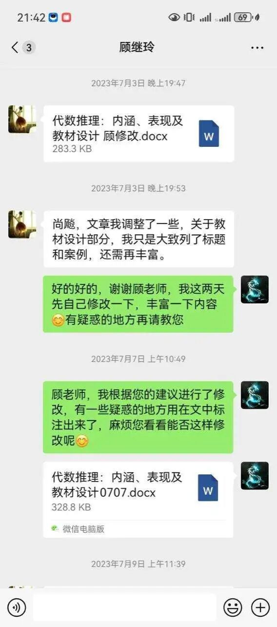 顾继玲老师不仅自己在专业研究方面造诣颇高,对研究生的科研工作也从头抓起严格要求,提出“四个一”的要求, “每天阅读一篇学术文章,每周听一场讲座或听一节优秀课,每月看一本书,每学期写一篇文章”,让同学们养成大量阅读、规范写作的习惯。在每周三个多小时的组会上,顾老师总能保持充沛的精力专注听取同学们的汇报,而后迅速精准地指出思考的症结,通过提问引导深思,并给出自己独到的见解。此外,顾老师一直鼓励同学们探索新的研究领域,“只要勇于尝试,一定会有所收获。”她的激励让同学们不再畏惧学术的挑战,积极参与各类活动,逐渐建立起了学术自信。即便在同学们毕业后,顾老师依旧督促大家进行教学研究,“一个好的老师总是在做教学研究”。有同学回忆道:自己在与顾老师多次讨论后,最终在毕业后的暑假完成文章初稿;毕业后的一年内每个月都在顾老师的指导下修改文章,从文章结构到标点符号,再到参考文献引用格式,顾老师持续耐心细致地无私帮助;最终,论文被《数学教育学报》录用,自身科研能力实现质的飞跃。顾继玲老师的严格要求让同学们意识到,学术研究不仅仅是解决眼前的困惑,更是培养发现问题、解决问题的能力;科研习惯不只是为了完成毕业论文,更是为终身专业发展奠定坚实的基础!
