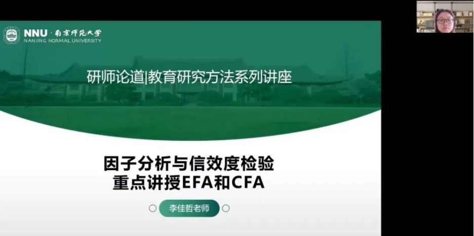 4月30日上午,“教育研究方法”系列讲座第三讲“因子分析与信效度检验”在线上顺利举办,本次讲座邀请教育科学学院李佳哲老师主讲,博彩网址大全 团委书记、研究生辅导员王鑫老师主持。 李佳哲老师本硕...
