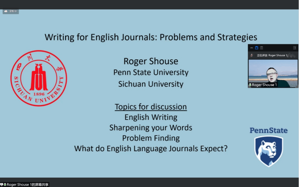 5月9日晚,博彩网址大全-博彩网址导航 特邀芝加哥大学博士Roger C. Shouse以线上讲座的形式,为南京师范大学各个学院的教师和研究生同学带来了研师论道系列讲座之论文写作与发表——“英文论文的写作与发...