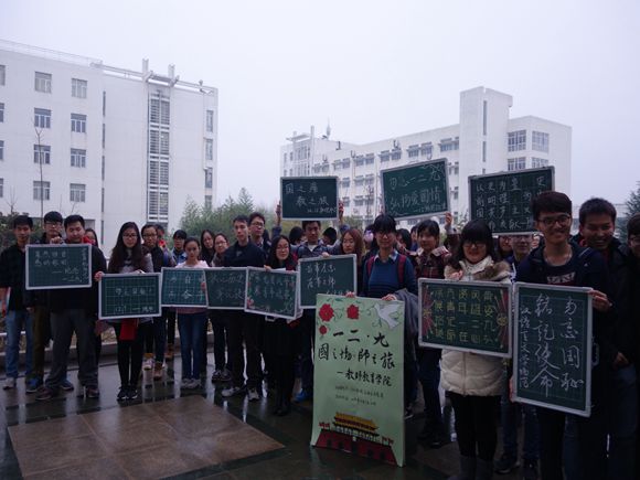 12月9日下午16时,博彩网址大全 13级、14级以及15级各班团支部在化成楼积极参加由院团委主办的以“传承一二·九精魂,谱写中国梦华章”为主题的团日活动。15级汉师班团支书孙旭鹏以及李博文同学参加了此...