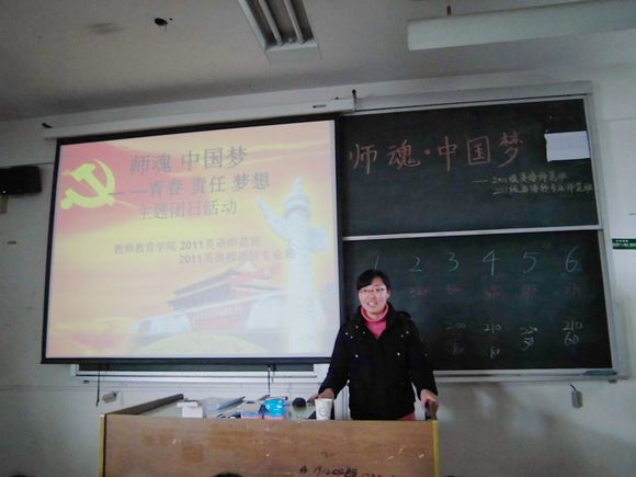 最美依旧师院风,大爱随行中国梦。3月21日下午,教师院11级英师转专业班与11级英师班共同举办的“师魂·中国梦”主题团日活动在学正楼406教室举行。辅导员翟云秋老师应邀参加了此次活动。整个活动充满青...