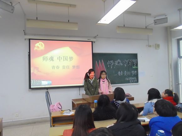 3月20日下午3点,博彩网址大全 12级英语师范班在学明楼413教室开展了以“师魂·中国梦——青春、责任、梦想”为主题的团日活动。这次班会由团支书单皖苏、组织委员杨馨蕾主持召开。 本次的团日活...
