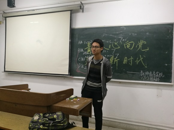 化学师范班在学明210举行《青春心向党,建功新时代》之信仰公开课。此次活动让同学们深入地了解了中国共青团了以及党当前的目标、发展等。
