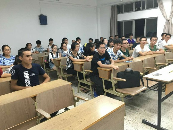 首先,班级42名新同学依次进行了自我介绍,气氛热烈,同学们借此机会加深了相互之间的了解。通过同学之间的相互介绍,许多外省的同学都欣喜地找到了自己的老乡,同时许多南京本地的同学也都表示了对全班同学来到南京进行大学学习的热烈欢迎。随后,孙鹰渊学长分别从校园生活拾趣、校园学海行舟、校园缤纷之旅、校园军旅体验这四个方面详细介绍了校园学习生活的基本情况以及开学初期的注意事项。同学们听着校园生活的种种趣事以及前辈们对于学校生活的亲身经历,仿佛感受到了大学生活的丰富未来,都迫不及待的想亲自感受一下大学校园里的精彩生活。面对众多的学校学生组织,同学们原本好奇的心随着讲解化为了期待的心,一个个都给自己制定了初步的计划攻略各大学生组织,希望通过不断锻炼提高自身的综合能力,在大学收获一段美妙的记忆。通过孙鹰渊学长的讲解,同学们更深入地了解了大学学习生活的基本情况,进一步确立了自己在大学的目标和方向,这让同学们能够更快更好的适应大学生活。其间有幸请到了13级物理师范的曾海涛学姐,她着重对校学生会和院学生会做了讲解,帮助同学们了解了学生会的体制与作用。