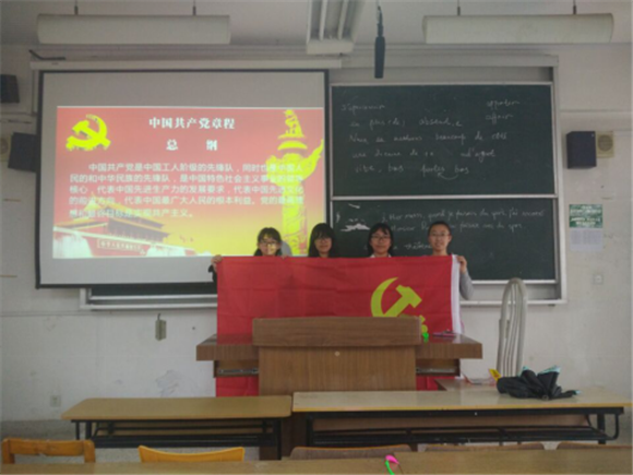 在2016.4.22下午4:30,221413团支部的四位同学在学正楼206举办了党课小组的讨论活动。