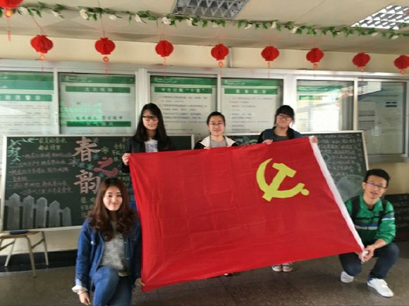 2016年4月21日上午,教师院13级地理师范班级中级党校小组在南师大老北区35栋学生宿舍开展为35栋宿管站出一次关于劳动节的黑板报的志愿活动。