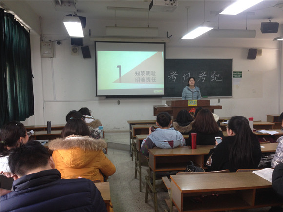 接着,她着重说明了诚信考试的重要性,并强调考试作弊现已纳入刑法,这足以说明国家对诚信考试的重视。此外,她还向同学们讲解了各种考试违纪与作弊的具体行为和惩罚措施并以此警示同学们千万不要触碰高压线。