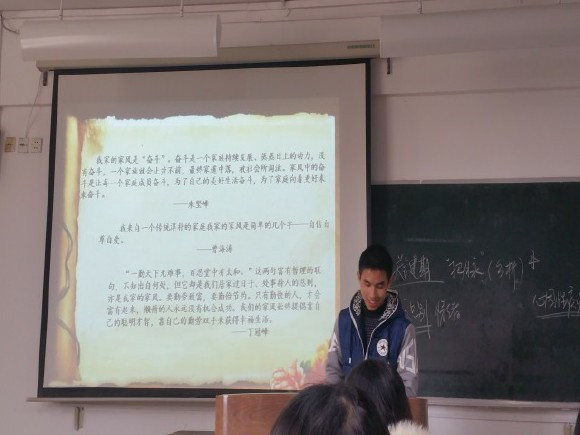 为了活跃氛围,陈亮同学首先为同学们播放了一小段《三体》宣传片,随后正式开始了交流会。寒假实践交流会的第一个环节是“孝爱育人”——寻找你的家风家训活动。陈亮同学在ppt上展示出了一个由同学们的全家福拼成的爱心,象征着同学们各自阖家幸福,全体物师班的同学们也团结友爱,随后便邀请了几位同学与同学们分享家风家训。交流会的第二个环节是寒假学习环节。陈亮同学在这个环节中展示了很多物师班同学们的寒假学习成果,其中有同学们各类书籍的读书报告,寒假中各种了解的不同期刊以及自主练习的硬软笔书法,着实反映了物师班同学们的充实寒假。交流会的下一个环节展现了同学们寒假中的所见所闻。有的同学利用寒假时间去陪伴孤寡老人,有的同学走出家门寻找身边的好人好事,还有的同学利用手边的取景器记录下家乡的美景。最后,同学们分享了各自家长的鼓励与寄语。