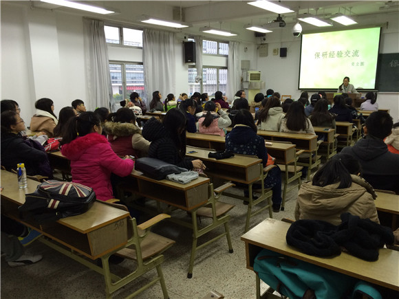 11月25日,冬季寒冷的天气抵挡不住同学们对于求知交流的热情。下午4点,13级、14级、15级化学师范班的同学早已坐在教室里,期待12级学姐分享她们的保研交流心得和学习中的点点滴滴。
