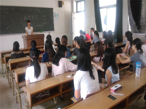 首先,支景老师对14级英语师范班上学期的成绩进行总结与点评,为班级的发展寄予了展望。她对大二学生关于考证、就业、保研、考研等困惑一一给予了细致的解答,强调了学习成绩对于大学生仍具有重要的意义,向英语师范班同学们提出许多建议。