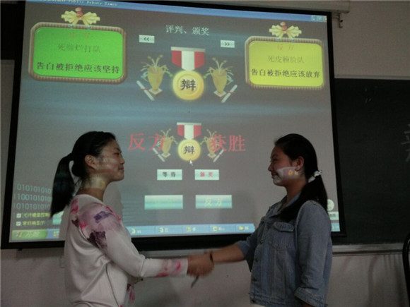 首先,正方辩手开宗明义,坚定的表达了正方的立场:告白被拒绝应该坚持。紧接着反方辩手提出:放弃是对自己的解脱,也是对对方的解脱,所以双方都能获得幸福。正方又提出质疑:只要可能,都要坚持,因为坚持,就有希望。短短几分钟,充分展示了双方辩手的机智幽默。随着比赛的白热化,双方你来我往,唇枪舌战,毫不示弱,整体氛围轻松愉悦。