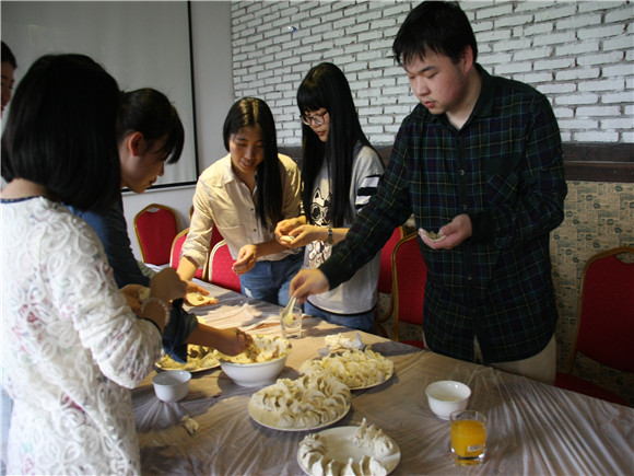 下午2点30分,英语师范班的同学们如约来到了别墅,大家先了解了别墅的各种娱乐以及烹饪的设施。很快大家就根据各自兴趣开始了各种活动,有的同学聚在一起开展了桌游活动,有的进入包厢开始唱歌,还有的同学热心地帮忙分发零食、清洗食材和包饺子。大家三五成群地聚在偌大的房间里游戏玩乐,轻松愉悦的气氛在春日的午后肆意弥漫,不觉时间过得飞快。不知是谁喊了一声饺子好了,大家纷纷放下手头的游戏,围聚在料理台旁,一张张笑脸氤氲在腾腾的热气中。吃完了饺子大家又一起准备晚餐,众人的齐心协作下,很快一切准备就绪。围坐在长长的餐桌旁,头顶的灯光昏黄而朦胧,真实的快乐却感染着在场的每一个人。随着夜晚悄悄的到来,本次的春游也渐渐走向尾声。