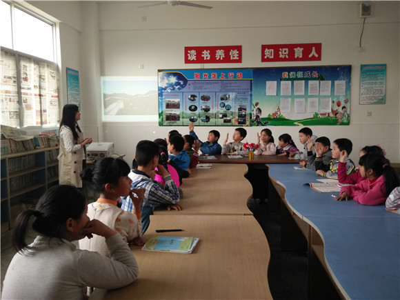南京三月末的天气已经非常炎热了,但因为油菜花的盛开,沿途风景变得非常好看。志愿负责人带大家来到六合新桥小学,在图书室准备给孩子们上课。