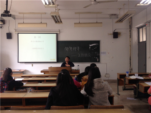 13级英语师范转专业班在学明楼113教室成功开展以“匆匆那年”为主题的心理班会。此次班会旨在帮助同学们建设健康心理,鼓励大家把握青春,留住精彩。活动由班级心理委员薛徐行同学主持,全班同学积极参与。