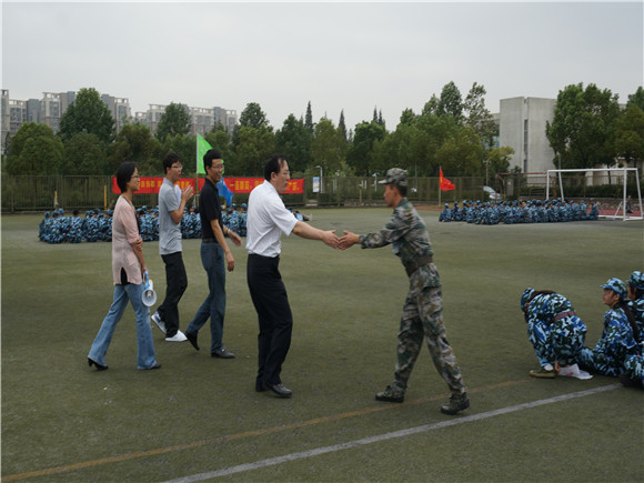 来到军训场地,老师们的到来受到同学们的热情真挚的欢迎。杨作东院长和张杰书记亲切询问了军训的情况,并听教官们做了详细的介绍。听到大家在军训中都秉着认真努力的心情和持着为学院争光的态度后,杨院长和张书记都感到很欣慰。