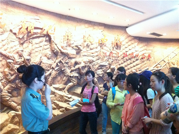 在长江边漫步后,我们进入了渡江胜利纪念馆的内部,由室内的讲解员为我们讲解。纪念馆内展出着渡江战役珍贵的历史文物资料及照片、图表、复制品、实物等近千件。陈列分为四大部分:渡江战役前的国内形势;将革命进行到底;百万雄师过大江;把红旗插遍全中国。整个展览生动反映了解放战争史上,人民解放军将士们在中国共产党的领导下,团结人民,英勇顽强,浴血奋战的光辉战斗历程,展示了革命战争史上的伟大革命战争场面和史实。通过讲解员的介绍与姚亦锋老师充满趣味的历史故事的补充,我们对于渡江战役的了解更多了,对革命成果来之不易的体会也更加的深刻。
