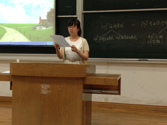 11级英语师范班在仙林校区学明楼201教室召开本学期第三次班会。本次班会由班长徐江涛和团支书张佳颖主持,主要进行了暑期社会实践和保研相关事宜的说明。