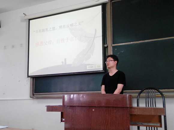 12级生物师范班在仙林校区北区教学楼205召开主题班会,本次班会由14级实习辅导员殷志伟主持,12级生物师范班全体同学参加,并由院里几位领导莅临指导,以感恩为主题,为我们带来一场心灵的盛宴。