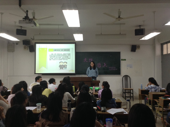 班委评议结束之后,由已经保送南京大学的张立学姐介绍教案写作的注意事项。教案主要由学情分析、教材分析、教学目标、重难点、教具、教学方法、教学流程、课后作业、教学反思等部分构成。张立学姐对每一部分都作了详细的说明。同学们还针对英语八级考试、保研考试、四城区考试等进行了提问,学姐非常热情,一一作了详细的解答。